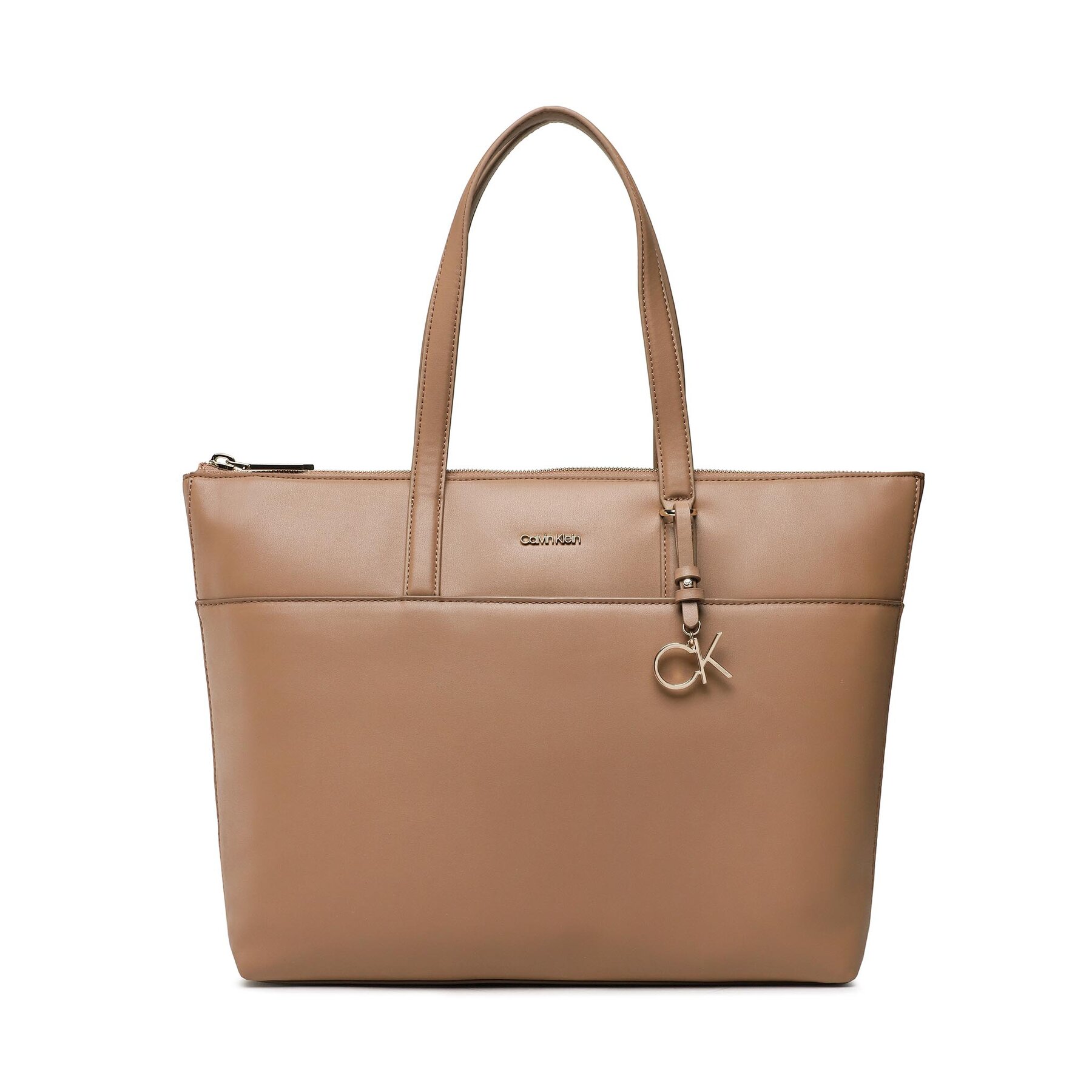 👜 Didelės rankinės moterims, Rankinė Calvin Klein Ck Must Shopper Lg W/Slip Pkt K60K609860 Ruda