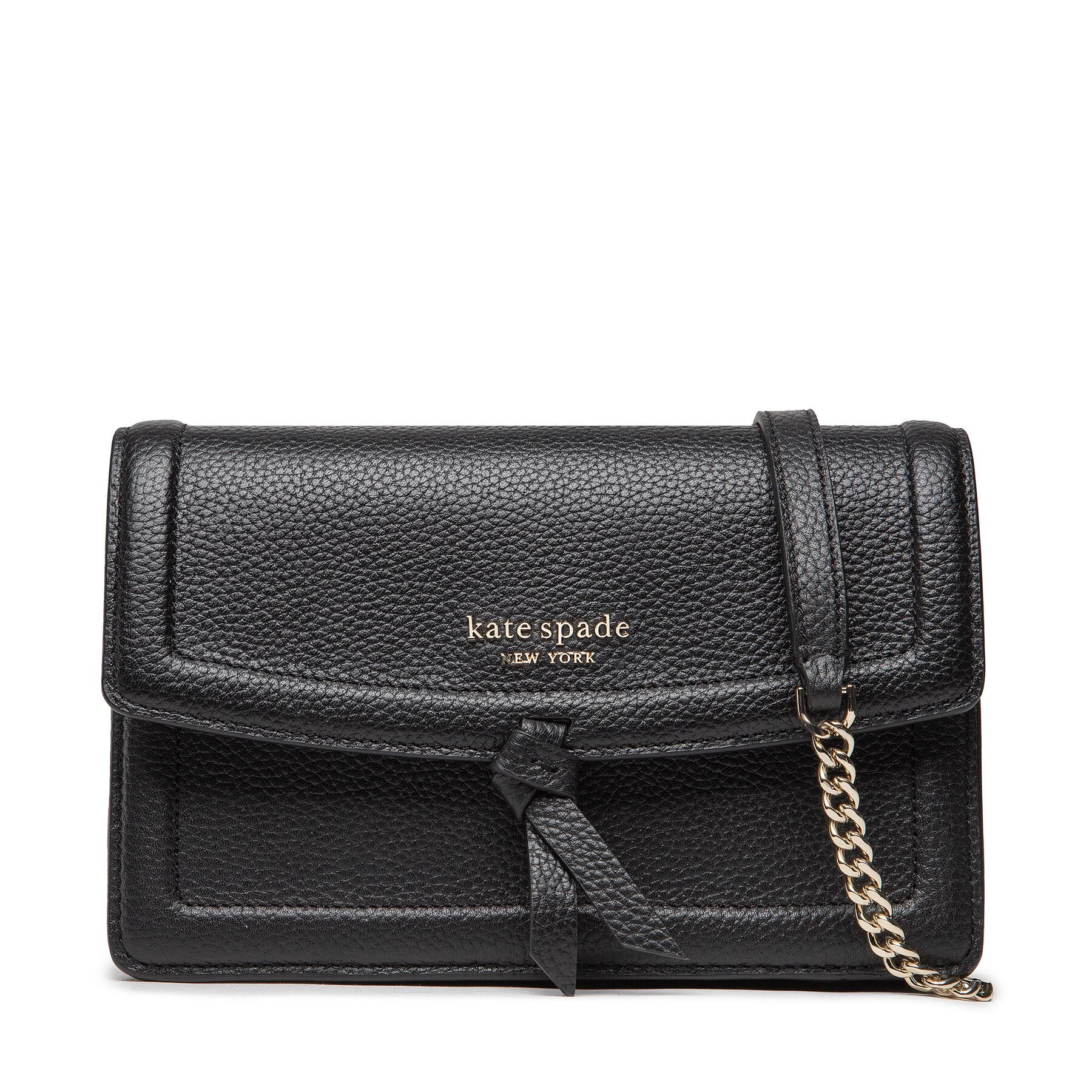 👜 Rankinės per petį, Rankinė Kate Spade Knott Pebbled Leather Flap Cro K6830 Juoda