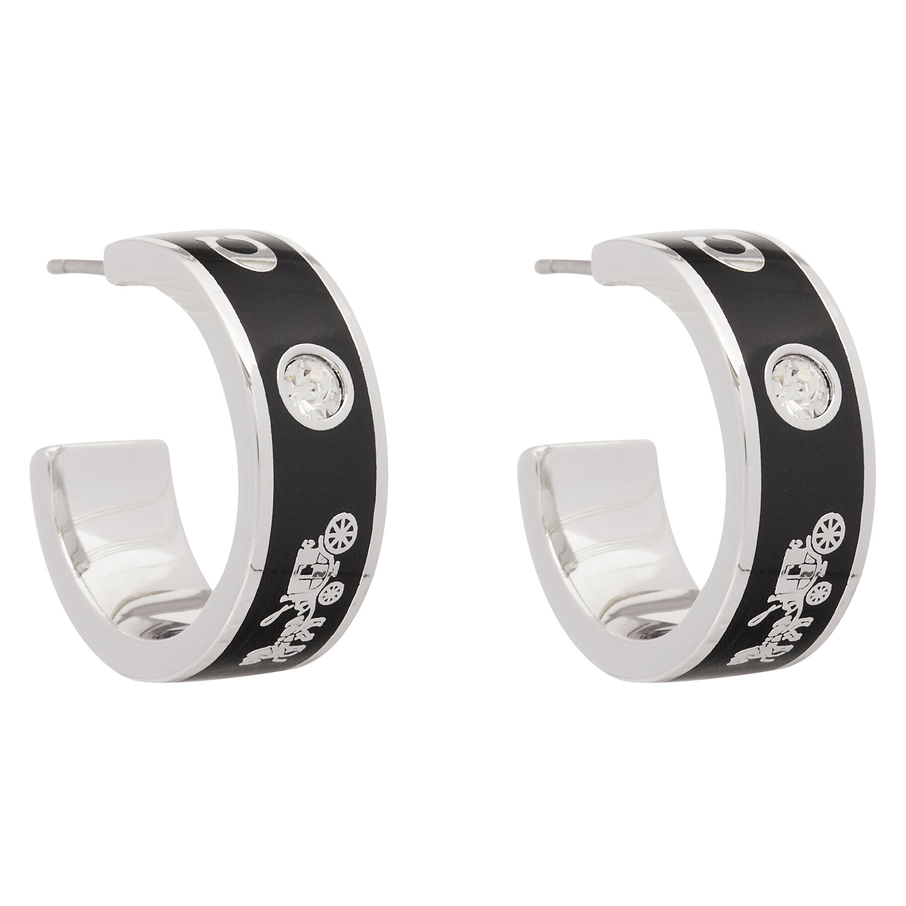 💍 Auskarai Coach Enamel Horse & Carriage Hoop Earrings 37479036RHO003 Juoda